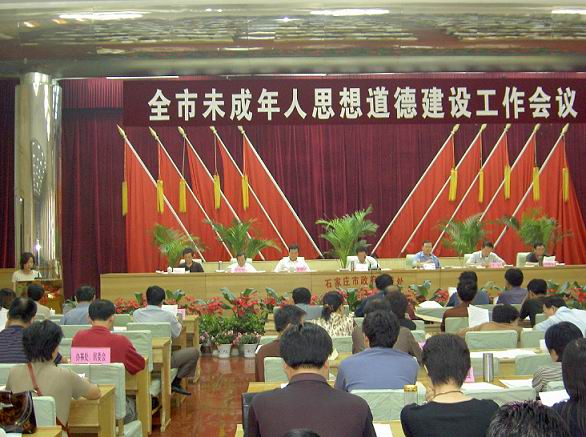 8月24日下午,全市各县、区教育局、办事处、居委会、中小学校代表、各大媒体500余人在市第一招待所参加了由市委、市政府召开的“全市未成年人思想道德建设工作会议”。会议由市委副书记张振江主持。首先由5个单位做了典型发言。其中代表学校做典型发言的全市仅两所:雷锋小学和四十中学。会上莫中勤副校长做了题为《培养学生良好习惯和优秀品质,夯实做人之本》的专题发言。最后,市委书记吴振华就我市贯彻落实中共中央、国务院《关于进一步加强和改进未成年人思想道德建设若干意见》和省委、省政府《措施》情况作了重要讲话。讲话中多次肯定雷锋小学和四十中学在未成年人思想道德教育工作上取得的成绩,并号召全市中小学向这两所学校学习。