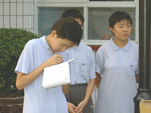 学生在留言本上认真写观后感