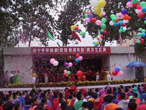 9月30日下午我校举行了国庆暨建校三十周年文艺汇演,在文艺节目开始前,进行了新团员入团宣誓。在近三个小时的演出中,同学们表演了歌曲,魔术,现代舞,拉丁舞,三句半,诗朗诵等节目,充分展示了我校师生的文艺才能,给全校师生奉献了一台极其精彩的节目,河北电视台一套9月30日的晚间新闻播出了相关报道。